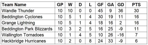 Juniors league Standings (2nd Half)